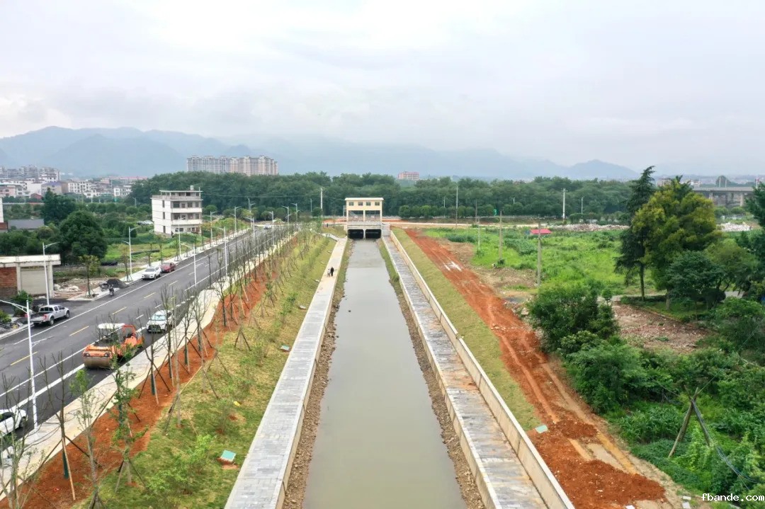 新开河北接穿城河,南连赧水河,全长800米,宽11米。项目投资1500万元,河道两侧铺设了3米宽黑色沥青步道。通水后,将有效缓解穿城河洪涝灾害,同时为市民提供优质滨水休闲空间。